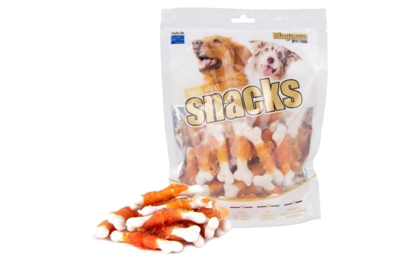 Pochúťka pre psov - kosť obalená kuracím mäsom