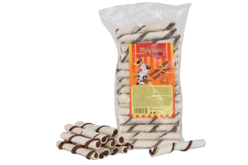 Pre psov Rawhide roll stick12,5cm (cca 40ks) BROWN/WHITE