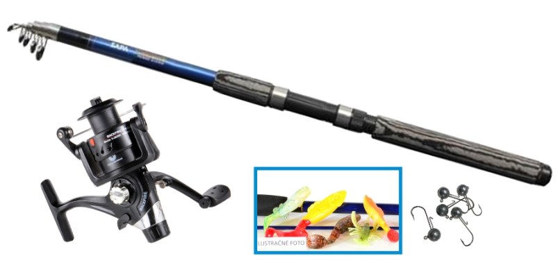 Akciový prívlačový set obsahuje 2,7m dlhý prívlačový prút , 5ks RELAX nástrah spolu s 5ks jigmi s váhou 6g + 3 ložiskový rybársky navijak so silonom velkosť 30