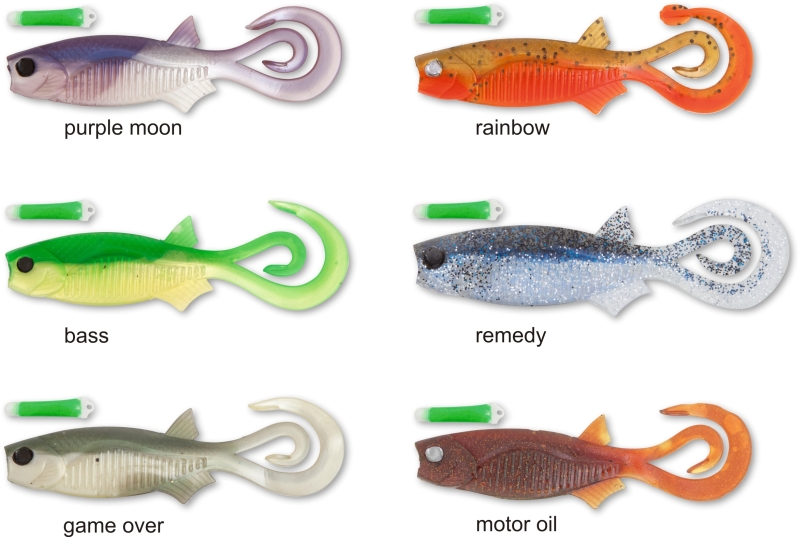 Twister, ktorý tu ešte nebol. Jeho špeciálny dvojchvost vytvára vo vode už aj pri najmenšom pohybe vzrušujúce vibrácie. Po bokoch má vrúbky, v ktorých sa udrží dip. Súčasťou balenia je vábiaca pasta na potieranie twistrov. Vhodný na lov rôznych dravcov.