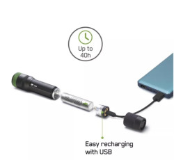 O napájanie sa stará vstavaný Li-Ion akumulátor s kapacitou 2600mAh a dodávaným napätím až 3,7V. S takto silným zdrojom vám vydrží svietiť až 40h. O stave akumulátora vás informuje LED dióda. Jeho nabíjanie trvá len 3h a môžete na to využiť vašu powerbanku, auto alebo iné zdroje.