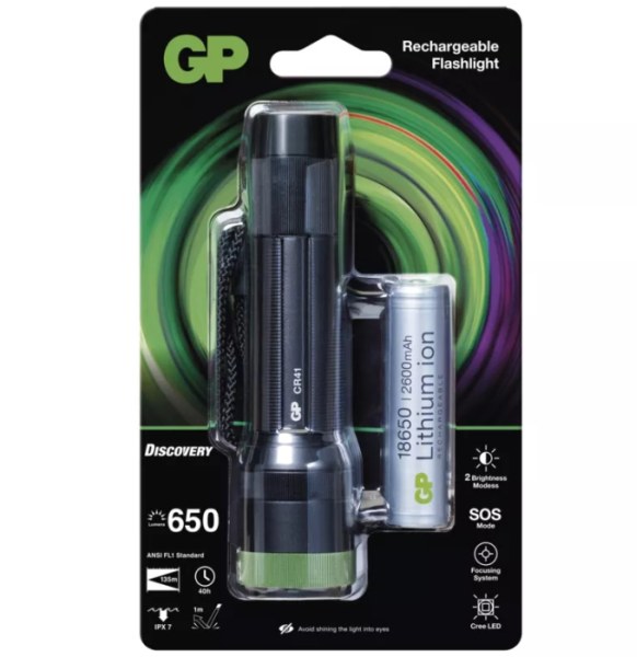 Výkonná, dobíjateľná, ručná baterka s výkonom až 650lm a kapacitou akumulátora 2600mAh. 4 režimy svietenia, vodeodolnosť IPX7, optický zoom