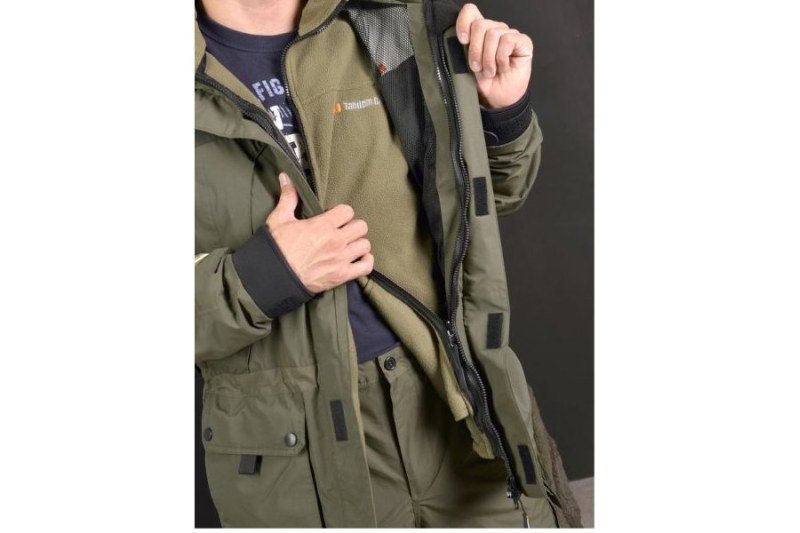 Rybárska bunda s odnímateľnou flísovou mikinou, vodným stĺpcom 5000mm. Je paropriepustná a nešuštivá, má obojstranné sťahovanie po bokoch v páse, reguláciu manžiet, 4 vrecká a nastaviteľnú 3D kapucňu. Ochráni vás pred chaldom, vetrom aj dažďom.