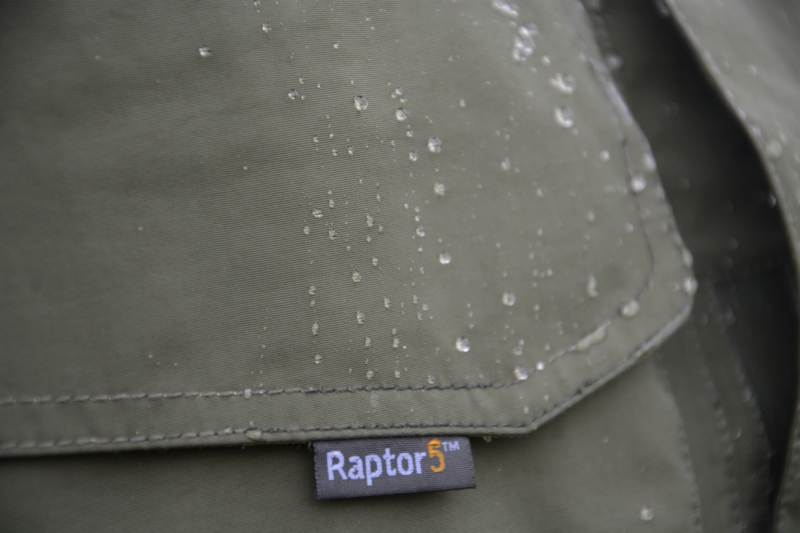 100% nepremokavá, priedušná a veľmi odolná. Tkanina v kombinácii s jedinečnou membránou ktorá ponúka impozantnú ochranu. Raptor 5 odoláva aj slanej vode. Jedinečná kvalita ktorá zaručuje vašu ochranu proti všetkým poveternostným vplyvom. Membrány sú vyrobené z polyuretánu v ktorom sa nachádza milióny mikroskopických pórov, čo umožňuje vodnej pary prejsť von ale pritom zabraňuje vode vo vstupe pod oblečenie. V praxi to znamená, že pri nadmernej telesnej vlhkosti(potenie) môže prechádzať cez membránu von, zatiaľ čo napríklad pri daždi zabraňuje vstúpiť dnu. To zvyšuje pocit komfortu pri nosení a stále prispieva k pocitu sucha na pokožke aj vo vlhkom prostredí. Tento typ nylonu vydrží podstatne väčšiu námahu a odoláva aj väčšiemu opotrebovaniu a preto je ideálny pre outdoorové aktivity.