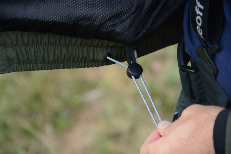 Stredový predný zips je chránený dvojitým prekrytím pomocou suchého zipsu a nerezových gombíkov.