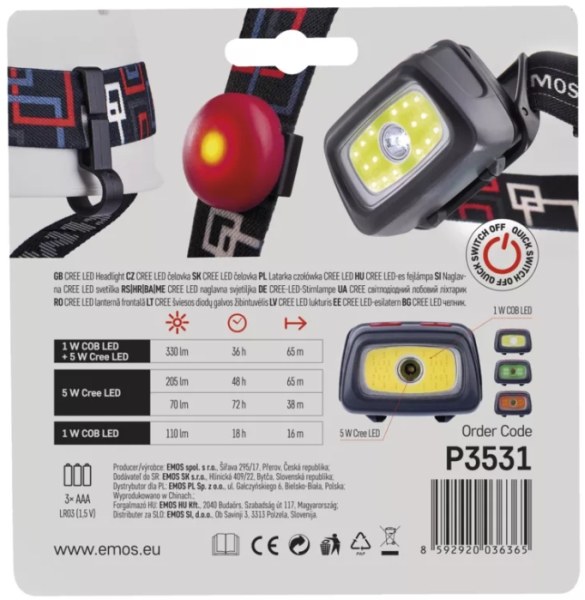 Výkonná čelová lampa na ryby, do lesa a všetky ostatné outdoorové aktivity. O hlavné svietenie sa stará výkonná LED CREE dióda so svetelným tokom 330 lumenov. Táto dióda dokáže osvetliť miesta vzdialené až 65m.