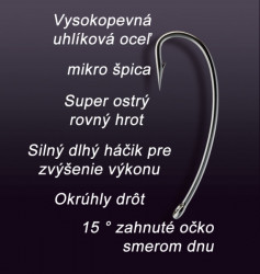 Nailer Long Shang je z tenkého drôtu, super ostrý a pevný háčik, vhodný na lov kaprov na veľké pop-up a menšie vznášajúce boilies. Má rovný hrot, dlhé, zahnuté ramienko s očkom. Počas nasatia a vypľutia nástrahy kaprom sa háčik otočí a zapichne do papule.