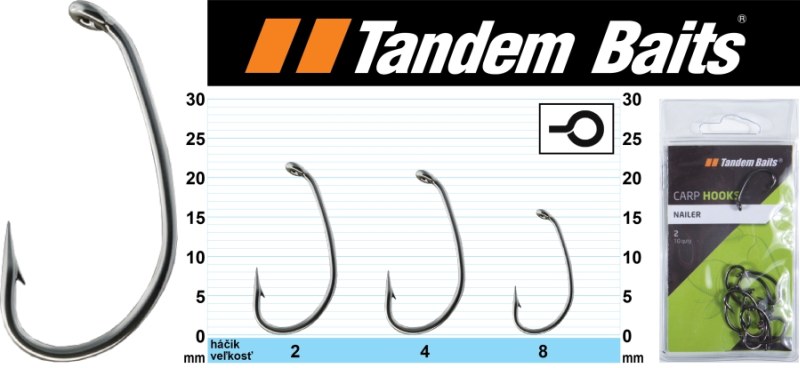 Nailer je výnimočne ostrý a pevný háčik, vhodný na všetky tipy montáží a lov s boilies alebo peletami. Má rovný hrot, zahnuté ramienko s očkom zahnutým do vnútra, ktoré dáva veľkú šancu chytiť korisť, pokusy o vypľutie končia samozaseknutím.