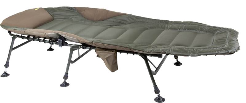 Extrémne pohodlné rybárske lehátko vysokej kvality na pevnenom ráme. Pohodlný matrac so vstavaným vankúšom zabezpečuje vysoký komfort počas spánku.