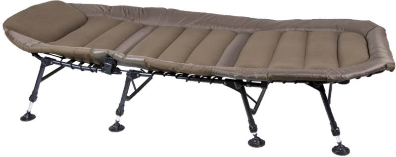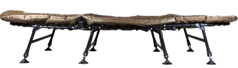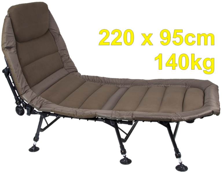 Extrémne stabilné a pohodlné rybárske lehátko vysokej kvality na pevnenom ráme na konci ukončenými bahennými ťapkami. Perfektný matrac so stavaným vankúšom zabezpečuje vysoký komfort počas spánku. Rozmer: 220x95cm x výška 35-45cm