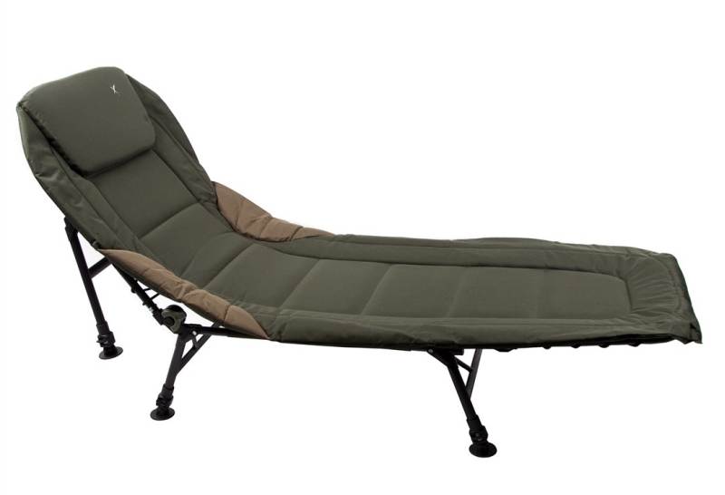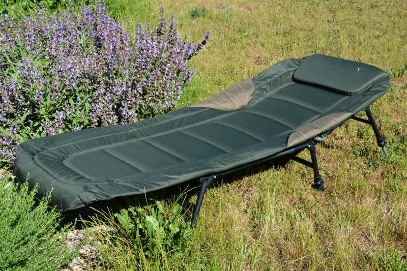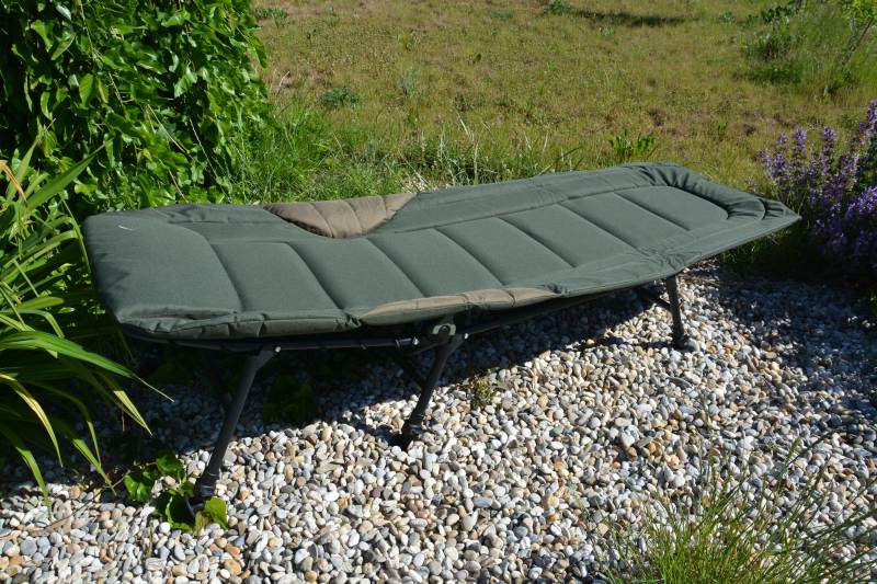 Lehátko vysokej kvality profilovom v dolnej časti spevnenom oceľovom ráme. Perfektné matrace so zabudovaným vankúšom, ponúka veľmi vysoký úžitkový komfort. Dokonale sa hodí k využívaniu počas rybolovu do bivaku alebo stanu. Pevné lehátko za super cenu.