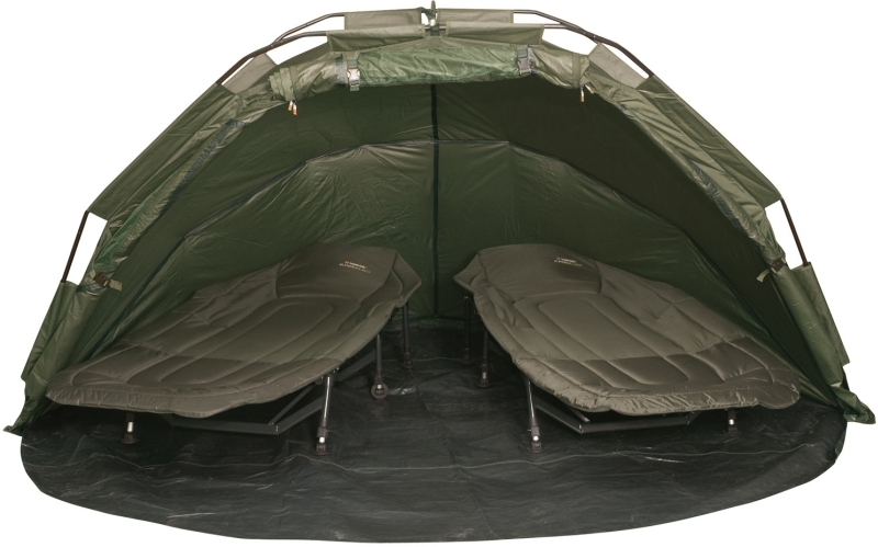 Moderný kaprársky bivak s vonkajším hliníkovým rámom s tromi nosnými a štvrtou napínacou tyčou. Toto nám umožňuje rozloženie bivaku bez použitia kolíkov (vo vetre je nutné bivak upevniť kolíkmi). Konštrukcia je určená predovšetkým pre mobilných rybárov, ktorí potrebujú stabilný a dobrú ochranu na rybách.