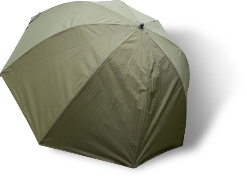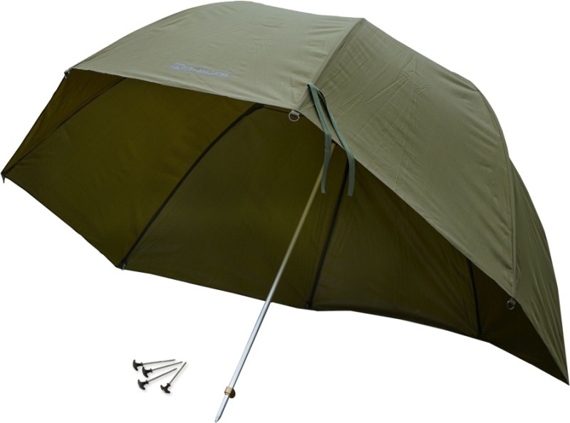 Široký rybársky dáždnik, vhodný aj na prespanie pri vode. Pohodlne sa vám doň vojde lehátko. Stredová tyč je pevná s pevným hrotom. Rozmer 345x260x305cm