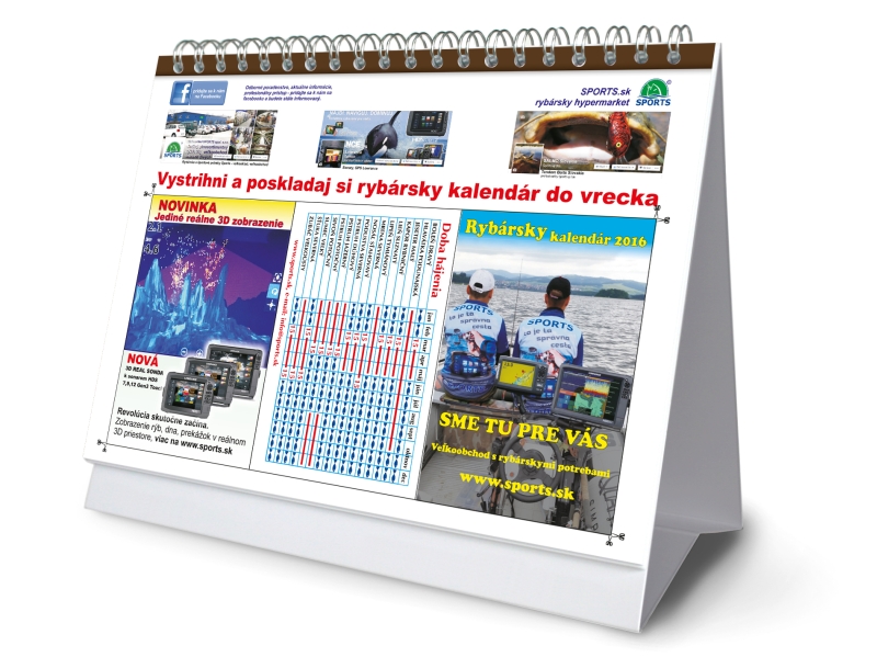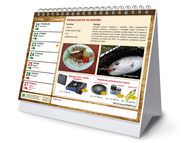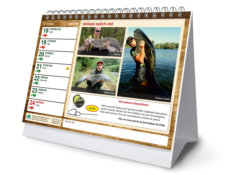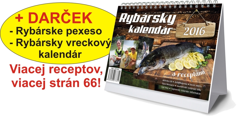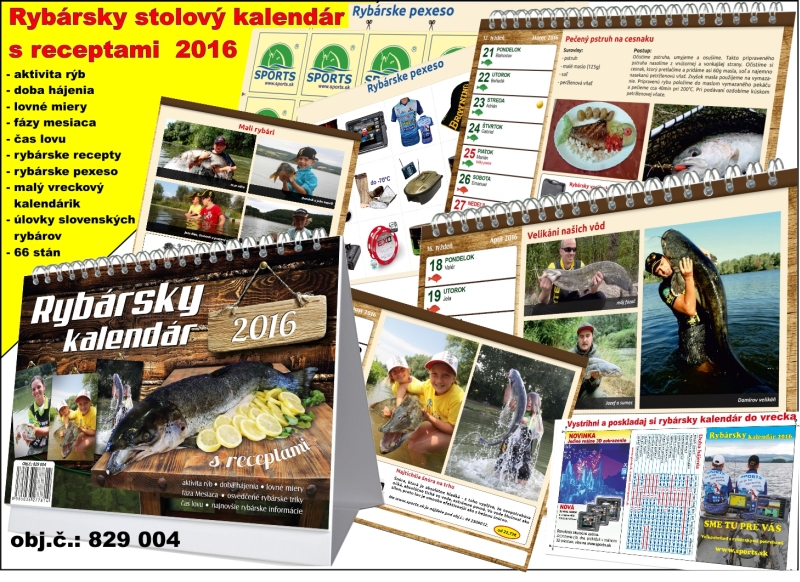 Ponúkame stolný rybársky kalendár na rok 2016 s receptami a novinkami ale aj napríklad dobou hájenia a fázami mesiaca a oveľa viac, ktorý poteší každého rybára.