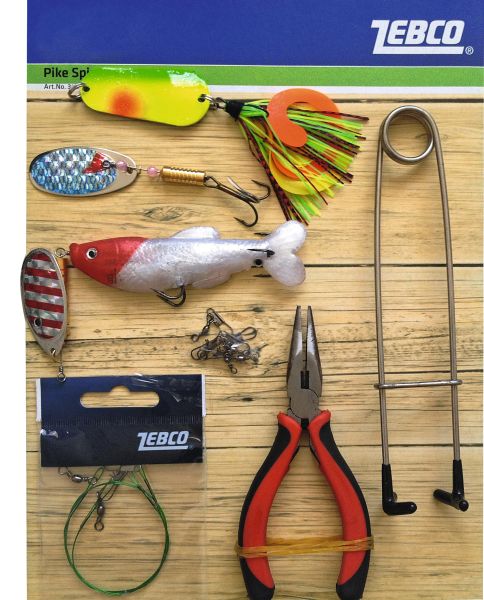Rybársky set príslušenstva pre lov šťúk na prívlač. Sada obsahuje tri nástrahy - plandavku, blyskáč a blyskáč s gumenou rybkou, lanká, karabínky, uvoľňovacie kliešte a otvárač papule.