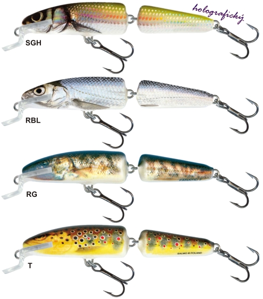 Wobler SALMO FANATIC, dvojdielny, dĺžka 7 cm, váha 5,0 g, plávajúci, hĺbka ponoru 0,5/1,0 m, štíhly wobler v tvare rybky s agresívnym a plynulým pohybom, má 2 trojháčiky č.8