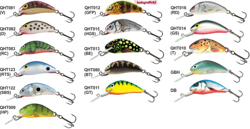 Wobler SALMO HORNET, dĺžka 3,5 cm, váha 2,2 g, plávajúci, hĺbka ponoru 1,0/1,5 m, zavalitejší wobler s agresívnym chodom a jedným trojháčikom č.10.