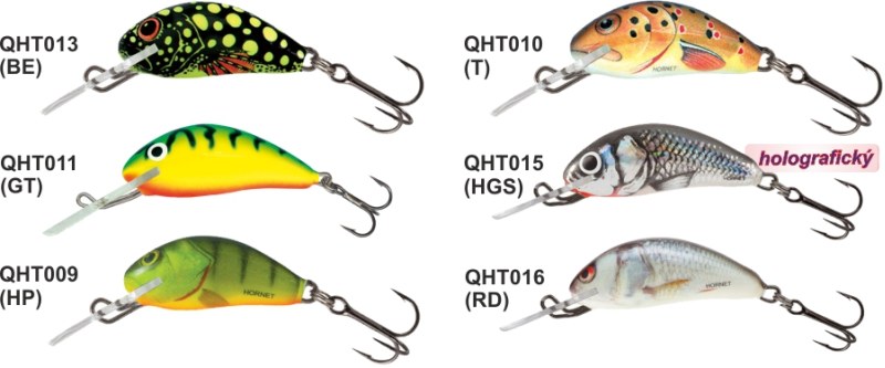 Wobler SALMO HORNET, dĺžka 3,5 cm, váha 2,2 g, potápavý, hĺbka ponoru 1,0/1,5 m, zavalitejší wobler s agresívnym chodom a jedným trojháčikom č.10.