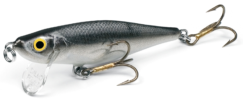 Wobler SALMO THRILL, dĺžka 7 cm, váha 12 g, hladinový potápavý wobler v tvare rybky, vhodný na lov na jazerách na lov boleňov rýchlym ťahaním. Dá sa s ním ďaleko nahadzovať a je veľmi účinný. Imituje rybku unikajúcu pred dravcom. Má 2 trojháčiky č.5.