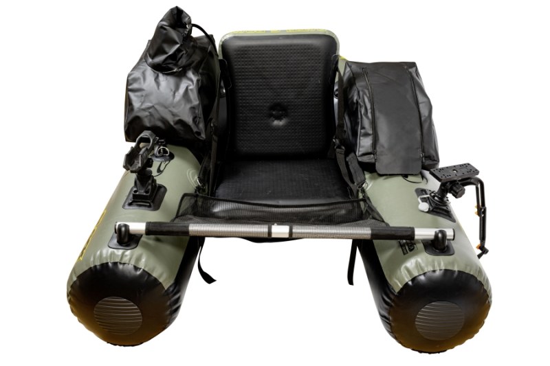 Bellyboat vhodný na prívlač, vertikálnu prívlač a trolling. Čelo pre elektromotor, elektromotor s výkonom 24lbs, držiak na prút a sonar, 2 nepremokavé tašky