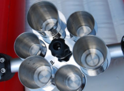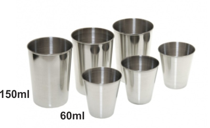 Odolné nerezové poháriky v textilnom puzdre. 3x 150ml, 3x 60ml