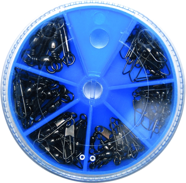 Praktická rybárska sada obratlíkov rôznych veľkostí pre rôzne rybárske montáže na lov rýb.