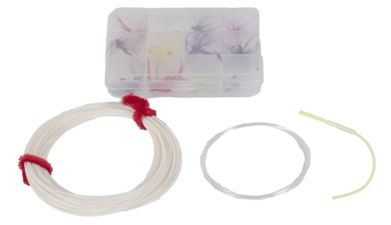 Tento set ponúka základné muškárske vybavenie. Trojdielny muškársky prút v dĺžke 2,4m, muškársky navijak, šnúru bielej farby, spojku šnúry a nadväzca, samotný nadväzec a 12 rozličných predviazaných múch v prehľadnej krabičke.