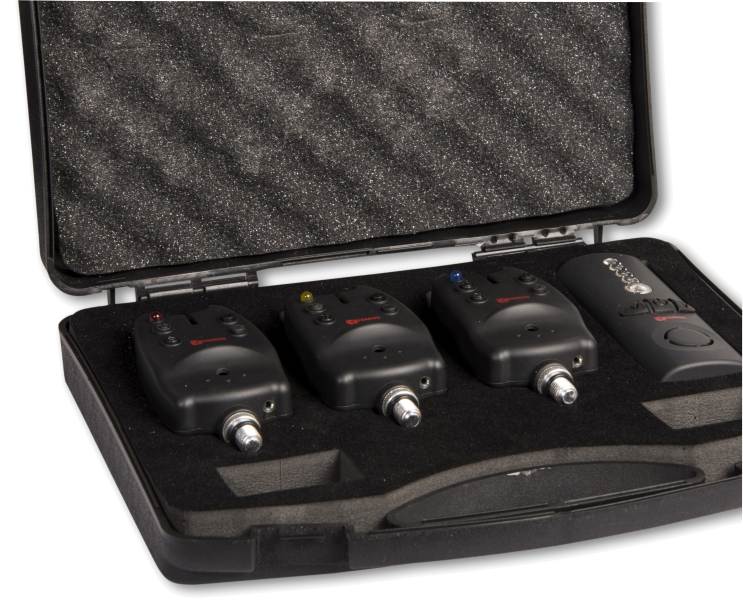 Set troch signalizátorov a jedného prijímaču za prijateľnú cenu. Najlepšie balenie pre rybára, aby mu neunikol žiadny záber. Vode odolný set s prijímačom.