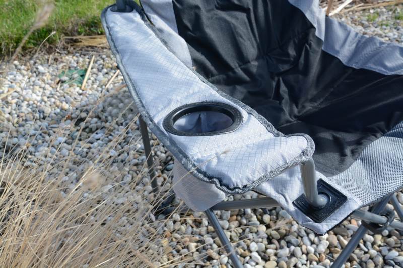 Rozkladacie kreslo pavúkového typu s lakťovými opierkami vybavenými držiakom na poháre. Zvýšená chrbtová časť pre pohodlné opretie hlavy. Rybárske kreslo dodávané s transportným obalom. Rozmer: 48x52x82cm
