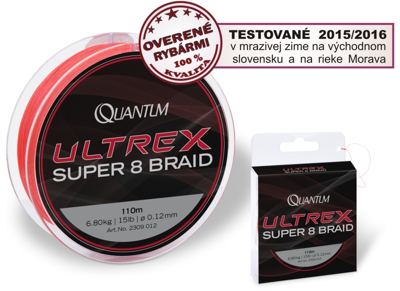 Ultrex je skrtkou pre ultra výkon. Ponúkame spletanú šnúru s minimálnou prieťažnosťou aby ste boli vždy v kontakte s vašou nástrahou alebo korisťou. Je neuveriteľne okrúhla a hladká, cez očká sa pohybuje veľmi ticho počas nahadzovania aj navíjania.