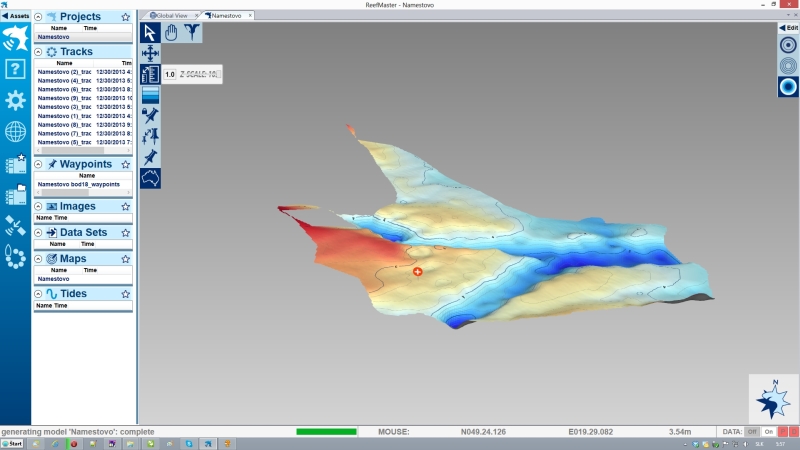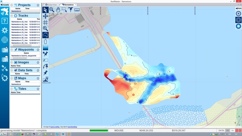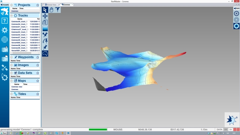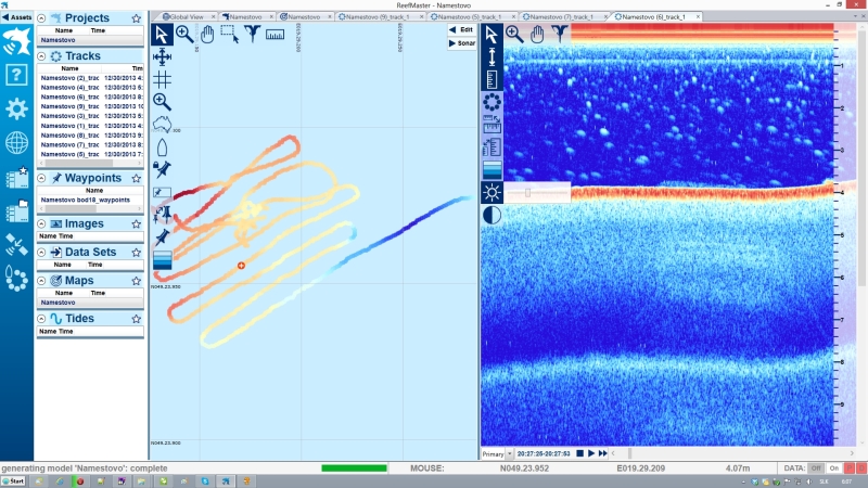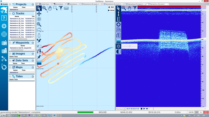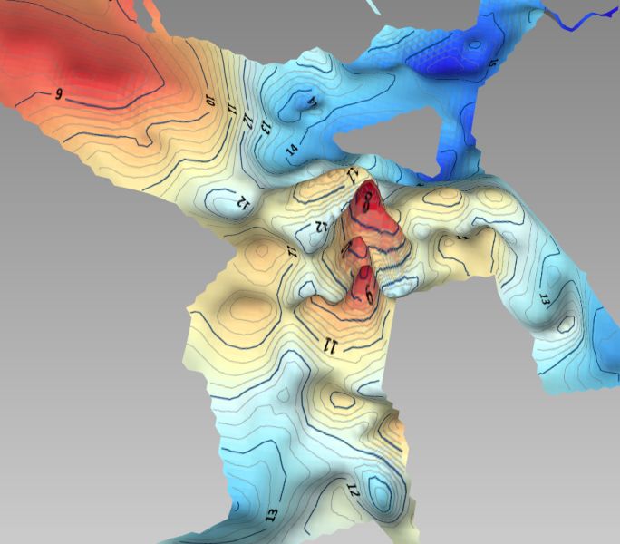 mapka s nasonarovanou časťou jazera a vytváranie 3D modelu