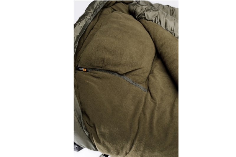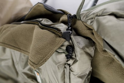 Pevný kovový zips je podšitý páskou zabraňujúcou zaseknutiu. Termická lišta všitá pozdĺž zipsu chráni pred vniknutím chladu dovnútra spacáku.