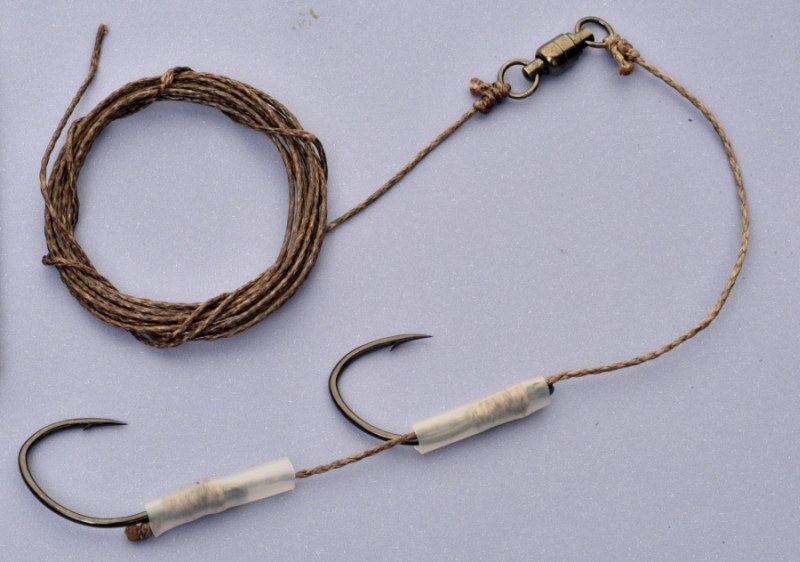 Hotový nadväzec na sumca na šnúre 0,92mm, s jednohákmi VMC 5/0, ložiskový obratlík, celková dĺžka 1,8m, nosnosť 80kg, vhodné na nastraženie ryby