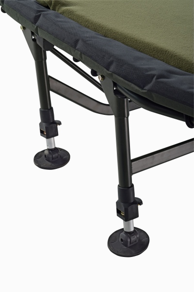Pevné a pohodlné rybárske lehátko s ôsmimi nohami. Oceľový LOW - PROFIL rám, šikmé výstuže, matrac Cocoon – z jednej strany hrejivý fleece v lete možnosť odopnutia,vankúš s vyberateľným vnútrom, nosnosť 220 kg !!!