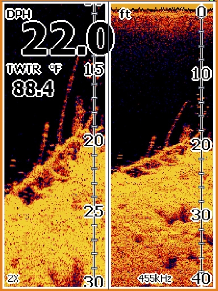 Odhalené dno – jednoducho rozoznáte tvrdé dno od mäkkého, tak ako aj ryby a prekážky na dne, alebo tesne nad ním