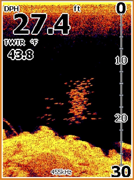 Odhalenie teplotných vrstiev – jasne viditeľné hranice vrstiev medzi dolnou studenšou a hornou teplejšou vrstvou bohatou na kyslík, v ktorej sa zdržujú ryby
