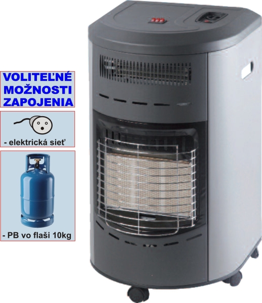 Jednoduché riešenie vykúrenia vášho rybárskeho domčeka, záhradnej chatky alebo karavanu. Kombinovaná s elektrickým napájaním. Zdroj bežná 10 kg PB fľaša, alebo elektrická sieť 230 V ktorá zefektívni vykurovanie miestností aj vďaka vstavanému ventilátoru