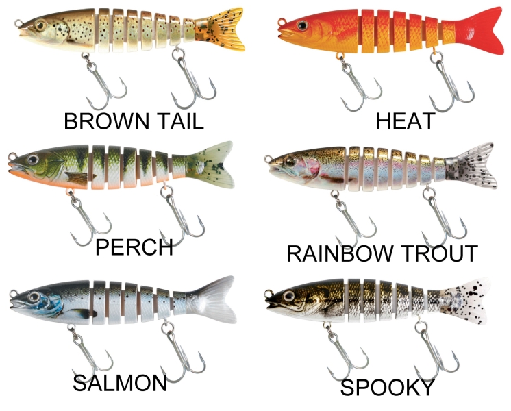Plastový, potápavý wobler, viacdielny s vymeniteľným gumeným chvostom-2ks.. Je osadený 2 trojháčikmi. Je vhodný na lov prívlačou na všetkých typoch vôd na prelovenie celého vodného stĺpca, má dráždivý vlnitý pohyb a výbornú farebnú úpravu.