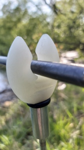 Gumená rohatinka s univerzálnym závitom pre všetky rybárske rasošky a stojany. Vďaka poddajnému materiálu obopne rukoväť kaprového prútu.