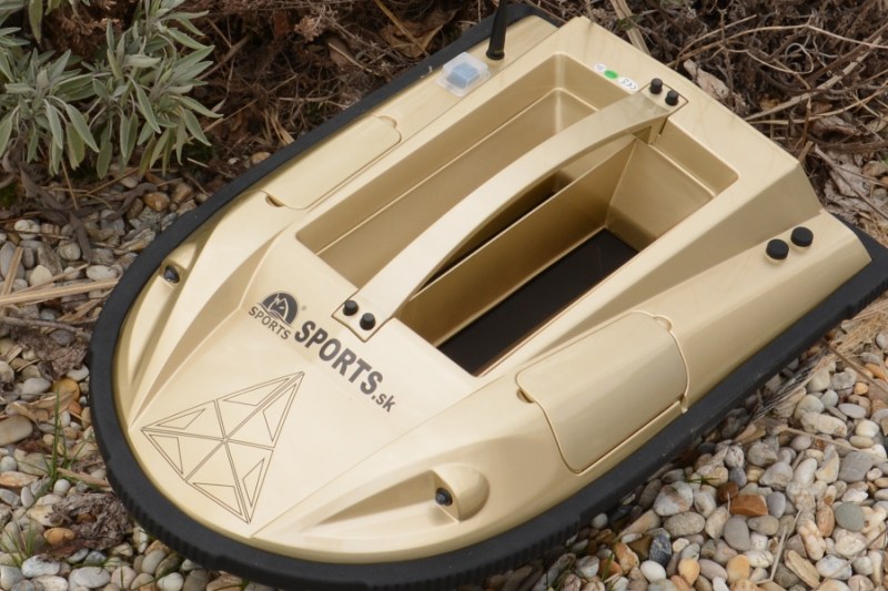 Zavážacia loďka s možnosťou vyvážania dvoch montáží a krmiva v dvoch zásobníkoch na jazerách a riekach s manuálnym alebo automatickým ovládaním.
