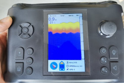 Na hlavnom veľkom displeji, je samozrejme možnosť vidieť celý vodný stĺpec a to od veľkosti hĺbky, teploty vody, rozlíšenie rýb a prekážok ktoré sa nachádzajú pod vodnou hladinou.