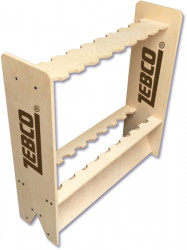 Štýlový rybársky stojan s logom Zebco, určený na vystavenie alebo uskladnenie rybárskych prútov. Rozmer 70x20x70cm.