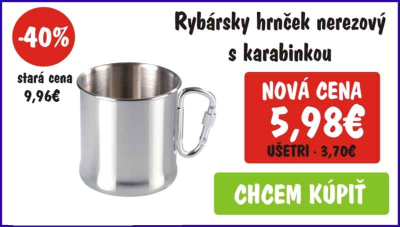 Len pre registrovaných teraz zľava 40%. Hrnček z nerezovej ocele s uškom v podobe karabíny. Vhodný nie len pre rybárov.